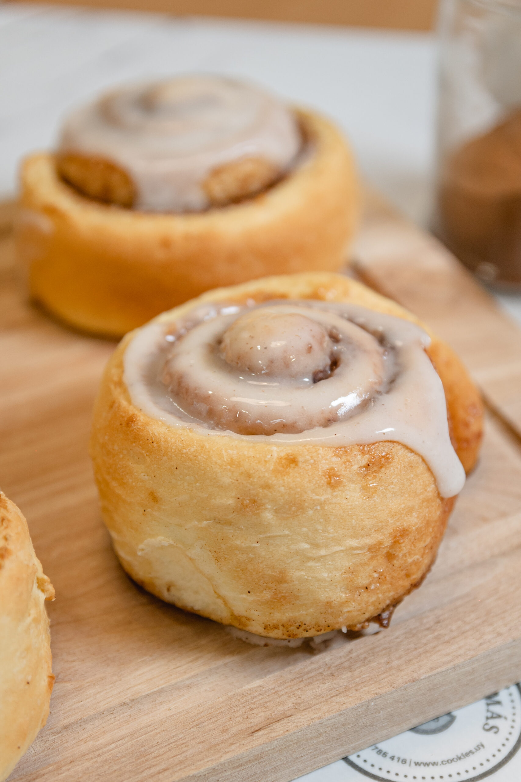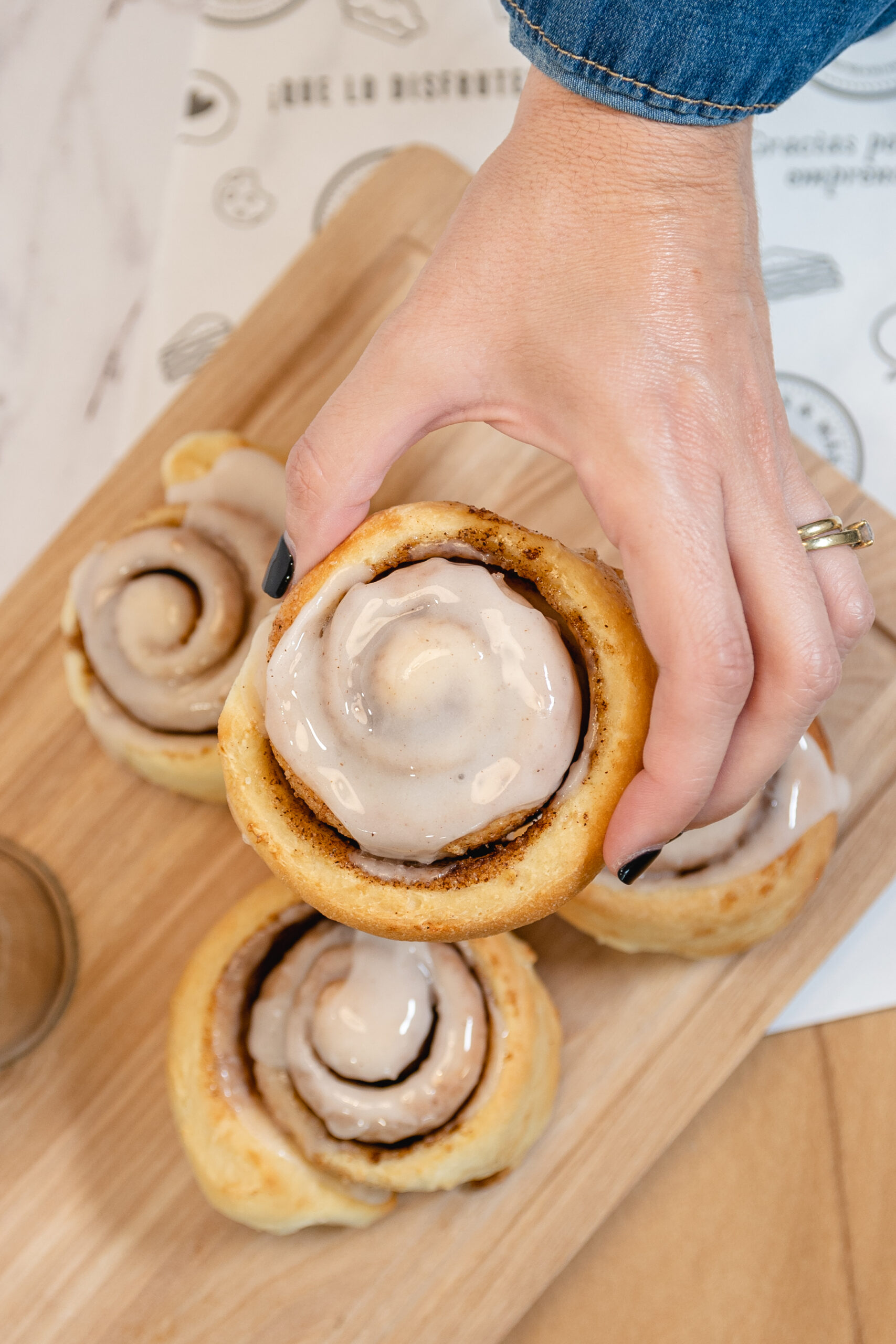 Deliciosos rolls de canela, congelados, listos para calentarlos en el microondas durante 30 – 40 segundos y disfrutarlos, ya prontos con el glaseado de canela.